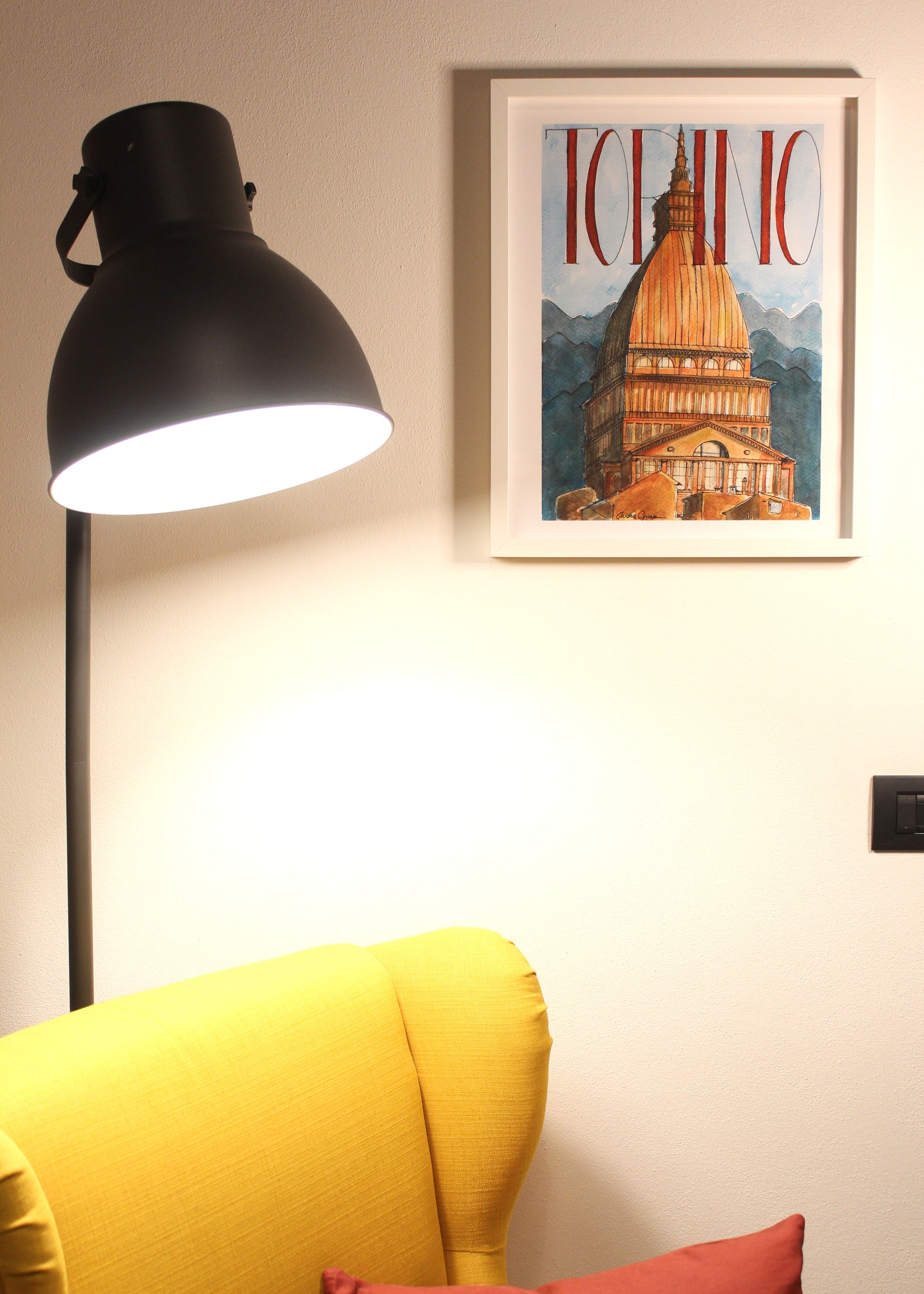 Una stampa artistica creata da una mia illustrazione originale ad acquerello e inchiostro, ispirata alla Mole Antonelliana, simbolo iconico della città di Torino.